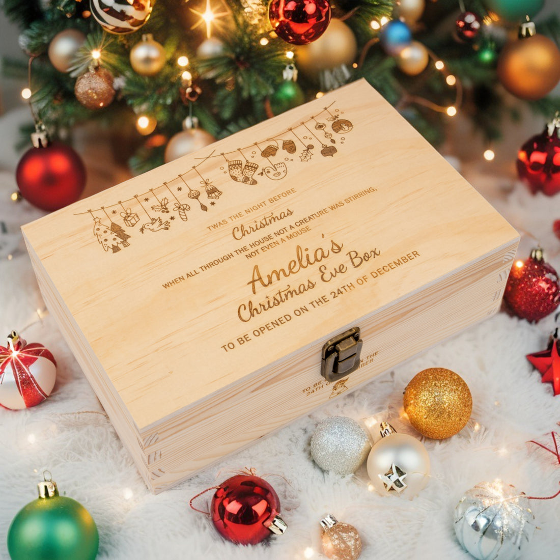 Personalised Christmas Eve box, New year gift Wooden Keepsake box